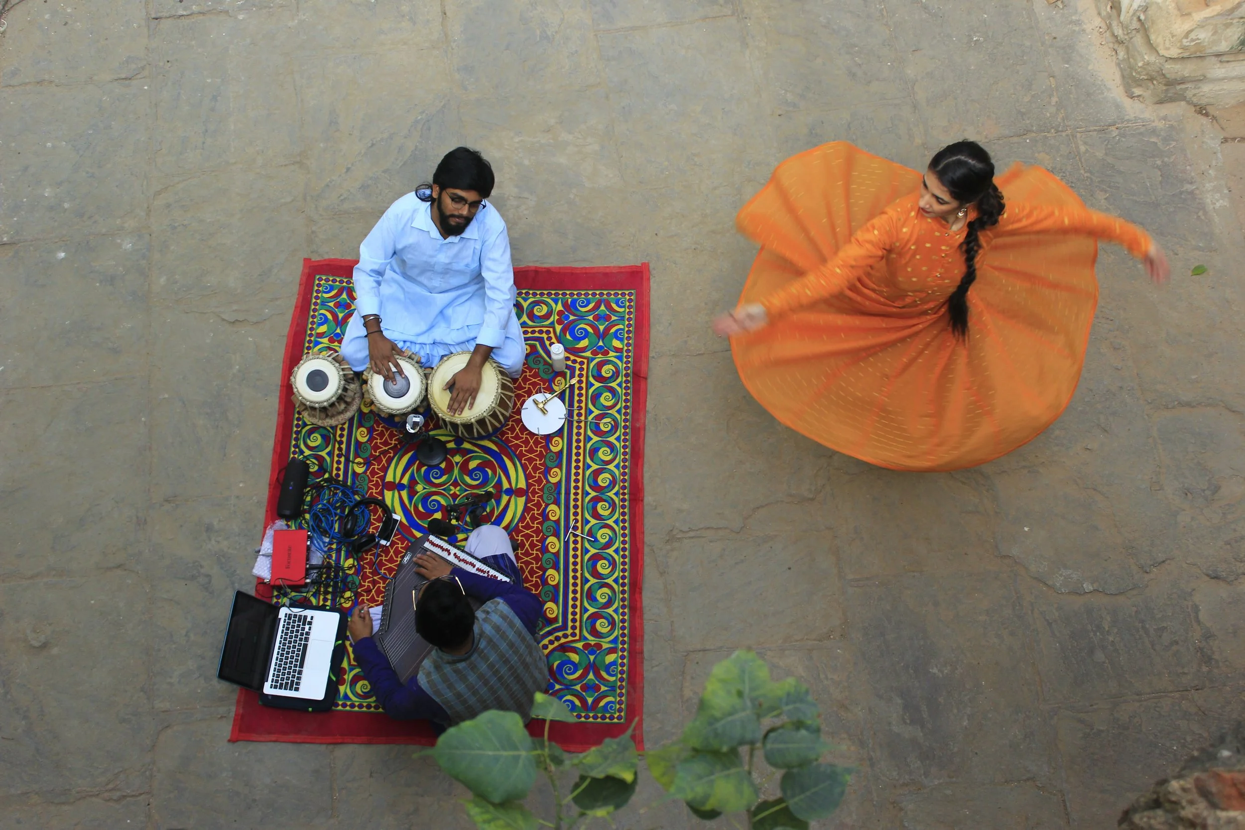 Established in 2017 by three young students of classical Hindustani music and dance, the Delhi-based collective emerged with the intention to challenge the conventions within Indian classical performing arts and to push against traditional boundaries. Exploring ways to emancipate the classical performing arts from inherited elitism and hierarchies, the artists cultivated a collectivist creative practice which allowed them to evolve their artistry in a critical space that allowed for discussion and experimentation. Performing outside the classical art bubble, and sharing their art with communities deprived of cultural programs, equally shaped their practice.